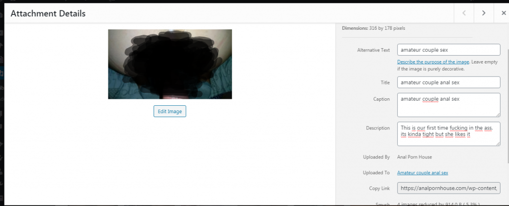 Entra nel tuo sito per adulti in WordPress , alla tua sinistra troverai una voce “Media” , clicca e troverai le foto che il plug-in ha importato quando hai caricato il video, dovrai cambiare tutto come da foto, Alternative Text, Title, Caption, Description. Inserite tutte quelle informazioni la tua foto sarà pronta per essere indicizzata da Google e non sarai anonimo.